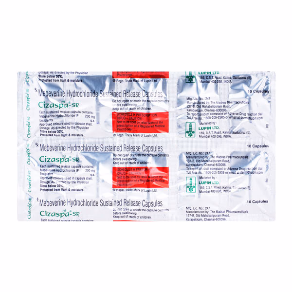 Cizaspa-SR Capsule is a medicine commonly recommended for easing abdominal pain and discomfort linked with irritable bowel syndrome and other gut-related disorders. It works by relaxing the muscles of the intestines, reducing cramps, and improving the passage of food and stool through the digestive tract. With regular use as advised by your doctor, it helps reduce bloating, gas, and spasms, making digestion more comfortable.