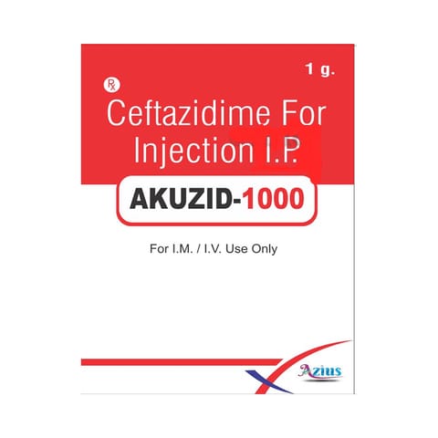Akuzid 1000 Injection is a prescription antibiotic formulated to treat a wide range of bacterial infections effectively. It is commonly prescribed for infections affecting the brain, lungs, ears, urinary tract, skin, soft tissues, bones, joints, blood, and heart. It is also used as a preventive measure to avoid infections during surgical procedures.