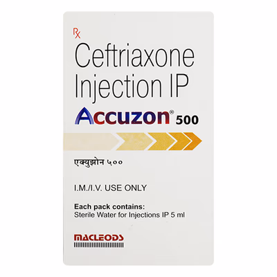 Accuzon 500 Injection is an antibiotic medicine that belongs to the cephalosporin group, containing ceftriaxone as its active ingredient. It is widely used in the treatment of moderate to severe bacterial infections. This injection works by targeting and breaking down the protective wall of bacteria, which leads to their death and helps in clearing the infection from the body. It is commonly prescribed for infections of the lungs, urinary tract, abdomen, bones, joints, blood, and skin. It is also useful in preventing infections after surgery and treating life-threatening conditions such as septicemia and meningitis. The injection provides long-lasting antibacterial activity, requiring fewer doses compared to other antibiotics. It is given only under the supervision of healthcare professionals either intravenously or intramuscularly. With proper medical care, Accuzon 500 Injection ensures effective infection control, faster symptom relief, and supports overall patient recovery.