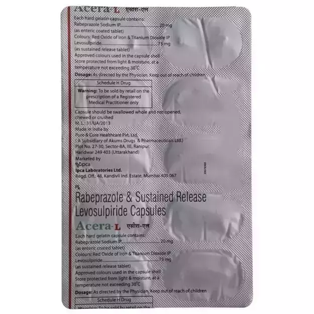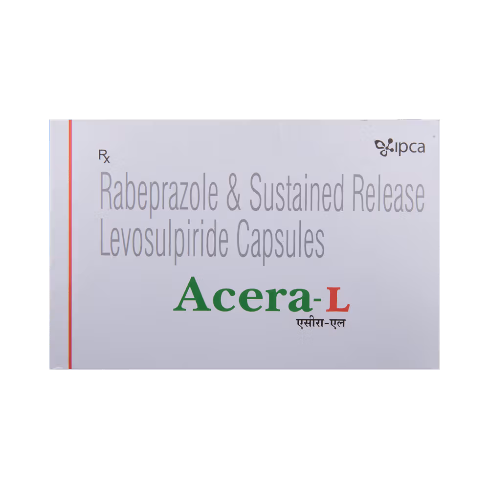 Acera-L works through a combination of two mechanisms. Levosulpiride acts as a prokinetic agent, enhancing the movement of the stomach and intestines and preventing acid reflux. Rabeprazole, a proton pump inhibitor, reduces acid production in the stomach, easing symptoms related to indigestion and ulcers.