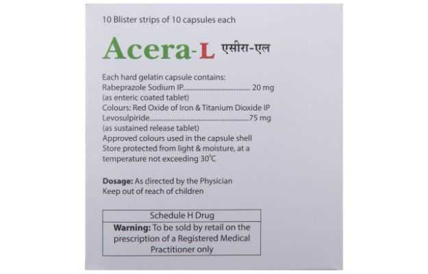 Acera-L Capsule SR is a medicine prescribed to manage conditions such as acid reflux, intestinal ulcers, and irritable bowel syndrome. It works by reducing excessive stomach acid and preventing the backward flow of acid into the esophagus.