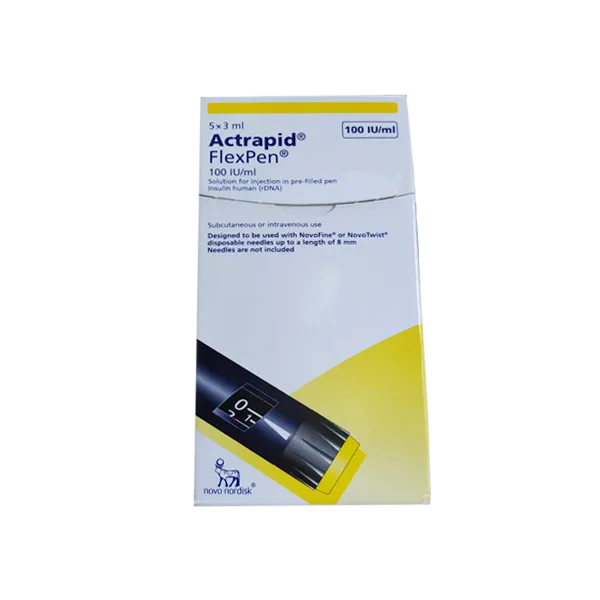 Actrapid 100IU/ml Flexpen (3ml) is a fast-acting insulin used in the management of type 1 as well as type 2 diabetes. It helps control blood glucose levels after meals and is usually prescribed along with lifestyle changes such as a proper diet plan and regular physical activity. By keeping sugar levels under control, it lowers the risk of long-term complications like kidney failure, eye problems, and nerve damage.