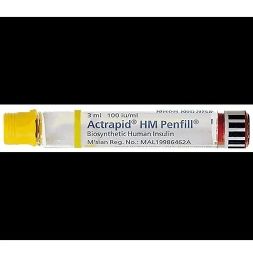 Actrapid HM Penfill (3ml) is a rapid-acting insulin used in people with type 1 and type 2 diabetes. It helps manage blood glucose spikes that occur after eating. When used regularly with a healthy meal plan and physical exercise, it lowers the risk of serious diabetes-related problems such as kidney damage, eye complications, and nerve issues.