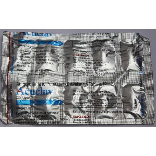 Acuclav 625 Tablet is an antibiotic medicine designed to combat bacterial infections in different parts of the body. It is effective against infections of the lungs such as pneumonia, as well as those of the urinary tract, ear, sinuses, skin, soft tissues, and other regions. This medicine is not meant for viral illnesses like common colds.