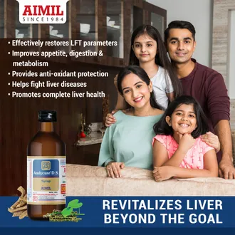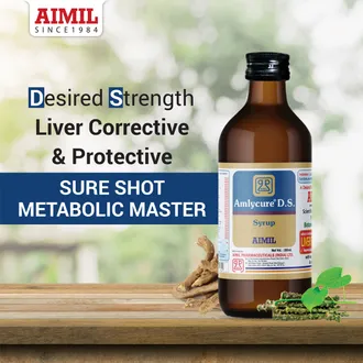 Aimil Amlycure DS Syrup is a **comprehensive liver tonic** formulated with a blend of potent Ayurvedic herbs that help **protect, detoxify, and rejuvenate the liver**. It supports overall liver health by enhancing its metabolic, secretory, and synthetic functions. The syrup is especially beneficial in managing **liver disorders** such as **fatty liver, jaundice, hepatitis, alcoholic liver disease, and drug-induced liver damage**.