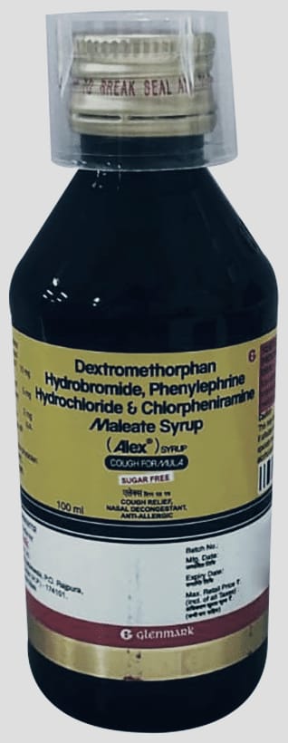 Alex Syrup Sugar Free is a combination of Phenylephrine, Chlorpheniramine Maleate, and Dextromethorphan Hydrobromide: