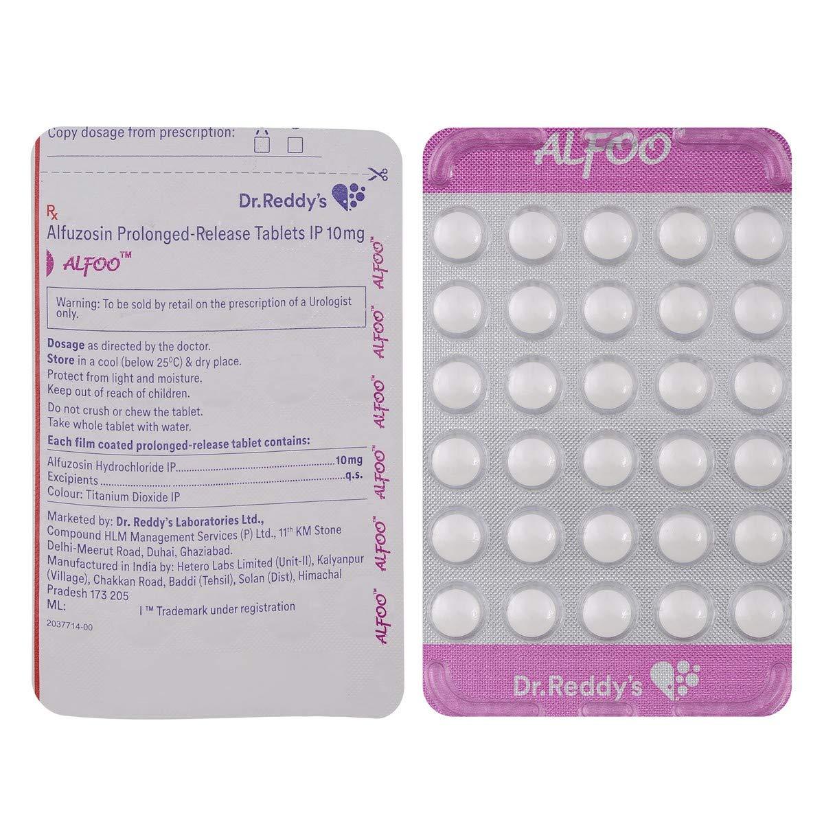 Alfoo 10mg Tablet PR belongs to the group of medicines known as alpha-adrenergic blockers. It is mainly prescribed for men suffering from benign prostatic hyperplasia, a condition where the prostate gland becomes enlarged. By relaxing the muscles in the prostate and bladder region, it helps ease problems like difficulty in passing urine, though it does not shrink the gland itself.