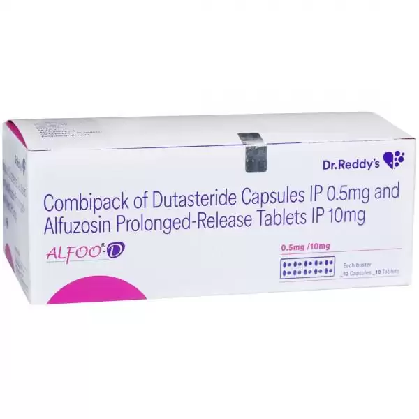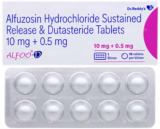 Alfoo-D Tablet SR contains two active ingredients, alfuzosin and dutasteride. Alfuzosin is an alpha-blocker that relaxes the muscles around the bladder outlet and prostate, making it easier to pass urine. Dutasteride works by lowering levels of a hormone that contributes to prostate growth, gradually reducing the gland’s size. Together, these actions help to relieve urinary symptoms and prevent complications such as complete blockage of urine flow.