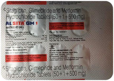 Alsita GM 1 Tablet is a prescription medication used to manage type 2 diabetes mellitus. It combines three different antidiabetic agents that work together to help regulate high blood sugar levels in individuals whose condition is not adequately controlled through diet, exercise, or other single or dual-therapy treatments. Maintaining appropriate blood sugar levels helps prevent long-term complications such as nerve damage, kidney issues, eye problems, and cardiovascular diseases.