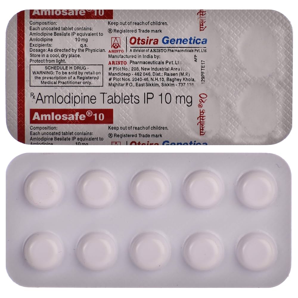 Amlosafe 10 Tablet is a medicine used for the treatment of high blood pressure and certain types of chest pain (angina). It works by relaxing blood vessels, allowing blood to flow more easily, which helps lower blood pressure and improve oxygen supply to the heart. By keeping blood pressure under control, it reduces the risk of heart attack, stroke, and other cardiovascular complications.