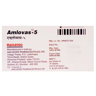Amlovas 5 Tablet is a prescription medicine that contains amlodipine, a calcium channel blocker widely used in the treatment of high blood pressure and certain heart conditions. By relaxing and widening the blood vessels, it allows smoother blood flow and reduces the pressure on the heart. This helps in lowering blood pressure, preventing complications like stroke, heart attack, and kidney damage. It is also effective in managing angina, a condition that causes chest pain due to reduced blood supply to the heart muscles, thereby improving the ability to exercise and reducing the frequency of pain episodes. Amlovas 5 Tablet is a commonly prescribed strength suitable for most patients requiring moderate blood pressure control. Taking this medicine regularly not only lowers blood pressure but also improves cardiovascular health and reduces the workload of the heart. It should always be used under medical guidance, and treatment should not be stopped suddenly without consulting the doctor.