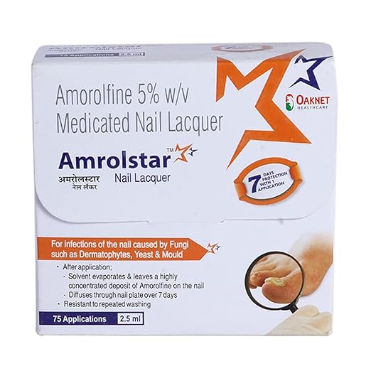 Amrolstar Nail Lacquer is a topical antifungal treatment specially formulated for fungal infections of the nails. It works by stopping the growth of the fungus that causes thick, brittle, discolored, or damaged nails. With regular use, it helps restore healthier-looking nails and prevents the spread of infection.