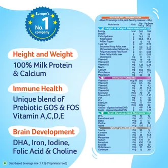 * Mix **2 scoops (approx. 30 gm) of powder** with 200 ml of milk or water.