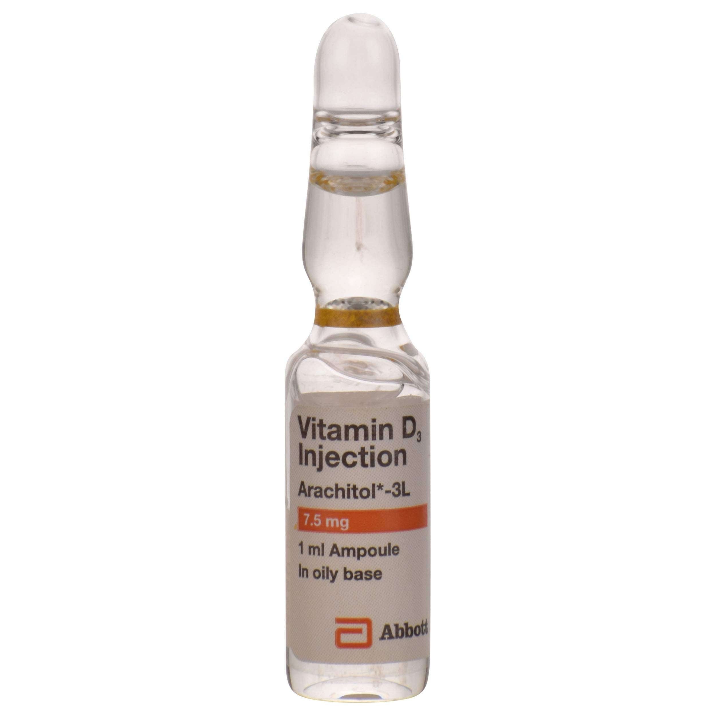 Arachitol 3L Injection is a vitamin D supplement that aids in the absorption of calcium, which is essential for maintaining healthy bones. It is typically prescribed when dietary intake alone is insufficient to meet the body’s vitamin D requirements. This injection can also support the treatment of bone-related conditions like osteoporosis, a condition where bones become fragile and more prone to fractures.