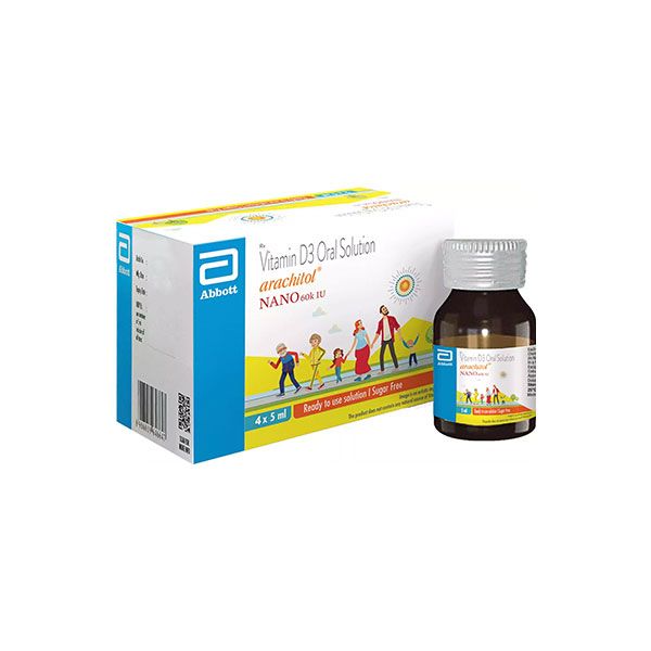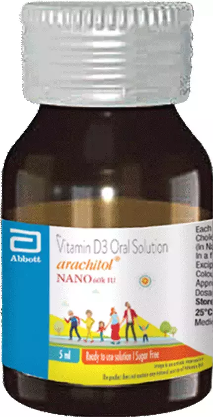 Arachitol Nano is a liquid dietary supplement containing Cholecalciferol (Vitamin D3) in a nanodroplet formulation. This high-potency vitamin D solution (60,000 IU) is designed to support bone health, enhance calcium absorption, and aid in overall skeletal strength. It is particularly useful in addressing vitamin D deficiency and related bone disorders.