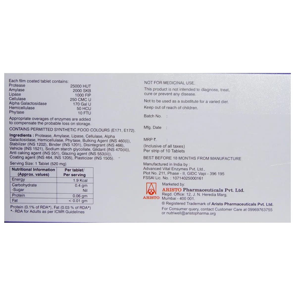 About Aristozyme Gold Tablet