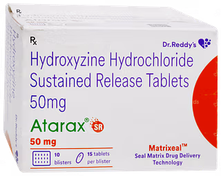 Atarax SR Tablet belongs to the antihistamine group. By blocking the chemical messenger histamine, it relieves allergic reactions like itching and rashes. In anxiety, it slows down certain brain activities, which brings about a calming and relaxing effect.
