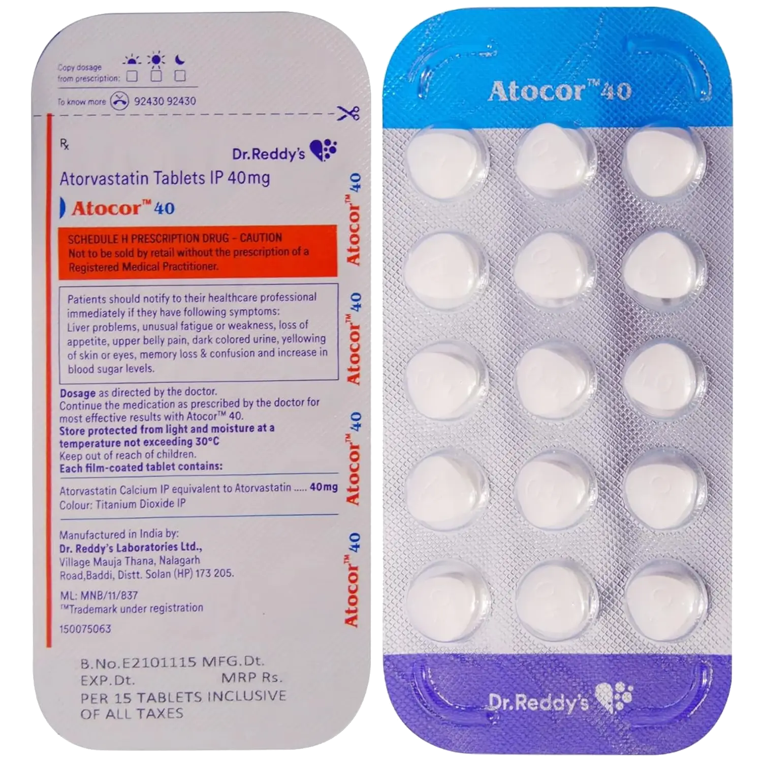 Atocor 40 Tablet is a medicine that belongs to the statin group, mainly prescribed to bring down high cholesterol levels and lower the chances of heart-related complications. Cholesterol, when present in excess, starts depositing in the blood vessels and makes them narrower, increasing the risk of serious issues like heart attack and stroke.