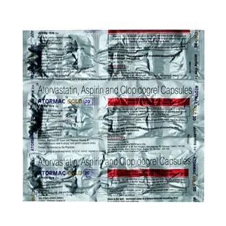 Atormac Gold 20 Capsule is a prescription medicine widely used for prevention of heart attack, stroke, and other cardiovascular complications in high-risk patients. It is a triple combination medicine that generally contains Atorvastatin, Clopidogrel, and Aspirin. Atorvastatin is a cholesterol-lowering medicine that reduces bad cholesterol and triglycerides while increasing good cholesterol, thus keeping blood vessels clear and preventing blockage. Clopidogrel is an antiplatelet agent that helps prevent platelets from sticking together, thereby reducing clot formation. Aspirin further enhances antiplatelet action, giving strong protection against heart-related events. This combination is especially useful for patients with a history of heart attack, stroke, angioplasty, stent placement, diabetes, or long-standing hypertension. By controlling cholesterol and preventing blood clots, Atormac Gold 20 Capsule ensures better heart health and reduces future risks. For best results, it should be taken regularly under medical guidance along with lifestyle modifications like balanced diet, exercise, weight control, and avoiding smoking or alcohol.