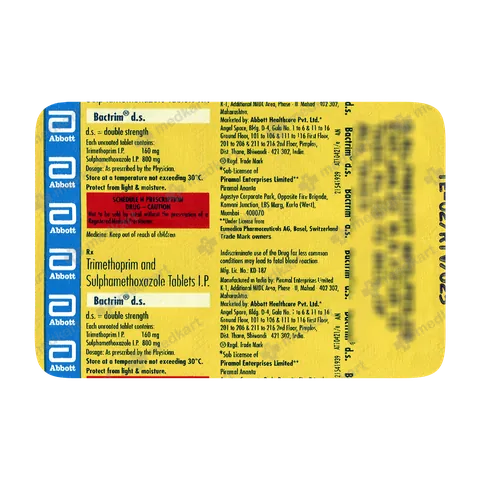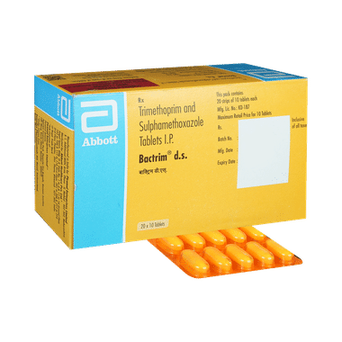 Bactrim DS Tablet is a broad-spectrum antibiotic used to treat a wide variety of bacterial infections affecting the urinary tract, respiratory tract, skin, ears, lungs, brain, and gastrointestinal system. It is also effective against toxoplasmosis and Pneumocystis pneumonia (PCP), particularly in individuals with weakened immunity.