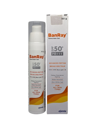Banray Sunscreen Gel SPF 50 PA+++ is a fast-absorbing, non-oily sun protection solution designed to safeguard your skin against harmful UVA and UVB rays. Enriched with peptides and antioxidants, this gel not only defends against sun damage but also supports skin hydration and promotes a healthy, radiant complexion. Its lightweight formula makes it ideal for all skin types and perfect for daily wear.