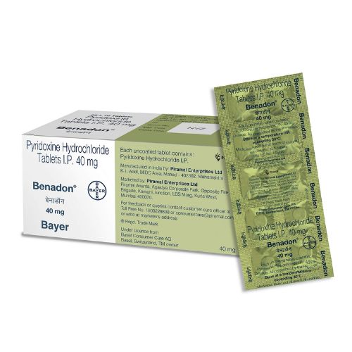 Benadon 40mg Tablet is a premium vitamin B6 supplement specifically formulated to support overall wellness by replenishing vitamin B6 levels in the body. Vitamin B6, also known as pyridoxine, plays a crucial role in maintaining nerve function, producing red blood cells, and enhancing metabolism and immunity. Regular intake of Benadon 40mg Tablet helps in preventing and correcting vitamin B6 deficiency that may arise due to poor diet, medical conditions, or prolonged medication use. It promotes optimal energy production, supports brain and nerve health, and contributes to emotional balance by aiding neurotransmitter synthesis.