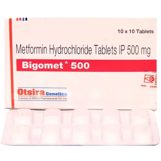 Bigomet 500 Tablet is an antidiabetic medicine commonly prescribed for people with type 2 diabetes mellitus. It contains metformin, which works by lowering glucose production in the liver, slowing down sugar absorption from the intestines, and improving the body’s response to insulin. By helping control blood sugar levels, it reduces the risk of long-term complications such as kidney problems, nerve damage, blindness, and heart disease.
