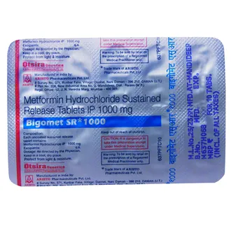 Bigomet-SR 1000 Tablet is a sustained-release medication designed to help manage type 2 diabetes mellitus by controlling blood glucose levels and preventing serious complications. It is also prescribed for women with polycystic ovary syndrome (PCOS), supporting hormonal balance, ovulation, and menstrual regularity. By improving insulin sensitivity, this medicine helps regulate metabolism, reduces excess androgen levels, and supports reproductive health.