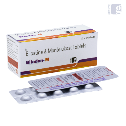 Biladon M 20mg/10mg Tablet is a combination medication designed to manage allergic rhinitis and other seasonal allergies. It effectively reduces symptoms such as sneezing, runny or blocked nose, itchy or watery eyes, and nasal congestion, improving breathing and overall comfort. By addressing the root causes of allergic reactions, this tablet helps decrease airway inflammation and supports respiratory wellness.