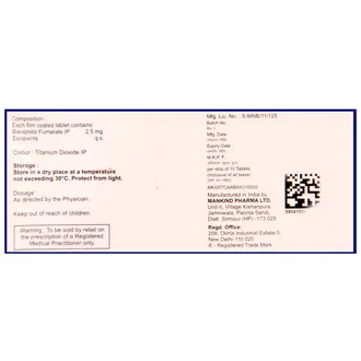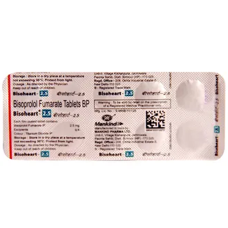 Bisoheart 2.5 Tablet contains Bisoprolol, a cardioselective beta-blocker that acts on specific receptors in the heart. It slows down the heart rate, decreases the force of contraction, and helps the heart pump blood more effectively. This reduces strain on the heart and ensures stable blood pressure, protecting against future cardiac events.