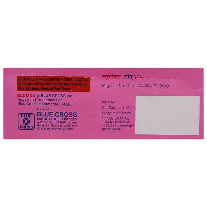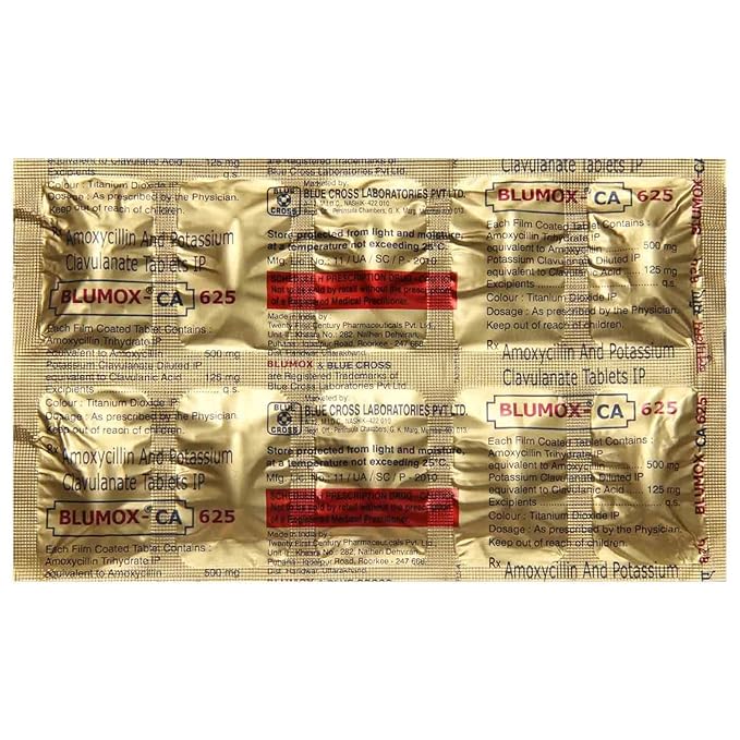 Blumox-CA 500mg/125mg Tablet is a powerful antibiotic formulation designed to combat bacterial infections effectively. It is commonly prescribed for treating infections affecting the lungs, ear, nasal sinuses, urinary tract, skin, soft tissues, and other areas of the body. This medicine is specifically effective against bacterial infections and does not treat viral illnesses such as the common cold or flu.