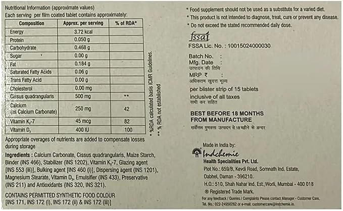 Bonestat Frac Tablet is a nutritional supplement formulated to support strong bones, healthy joints, heart health, and immune function. It helps maintain an adequate supply of calcium in the body and ensures proper absorption so that it reaches the bones effectively. The combination of Vitamin D3 and Vitamin K2-7 works synergistically—Vitamin D3 improves calcium absorption, while Vitamin K2-7 helps direct calcium to the bones and prevents excess buildup in the arteries, thereby promoting cardiovascular wellness. Cissus quadrangularis, known for its anti-inflammatory benefits, further supports joint comfort and mobility.