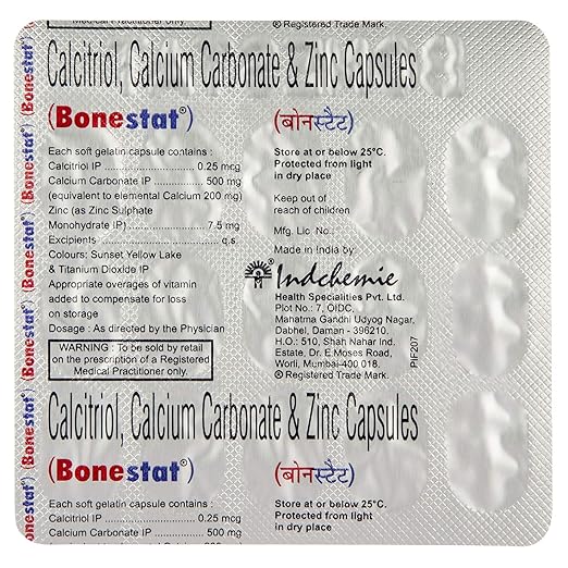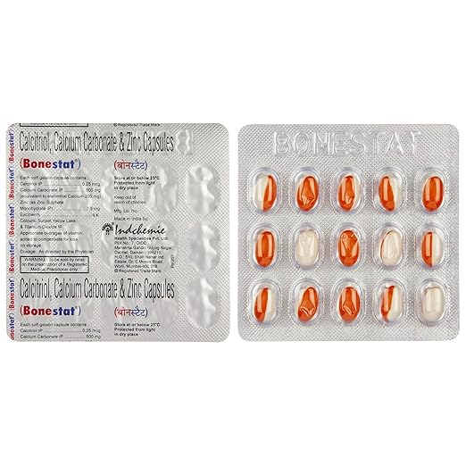 Bonestat Capsule contains a combination of Calcitriol, Calcium Carbonate, and Zinc Sulfate: