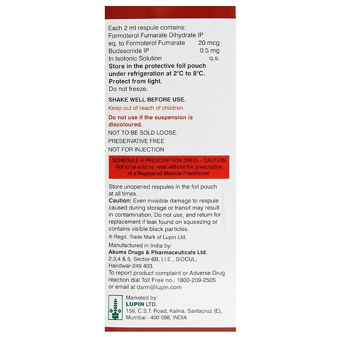 Each 2ml respule contains a precise blend of Formoterol, a long-acting bronchodilator, and Budesonide, a corticosteroid.