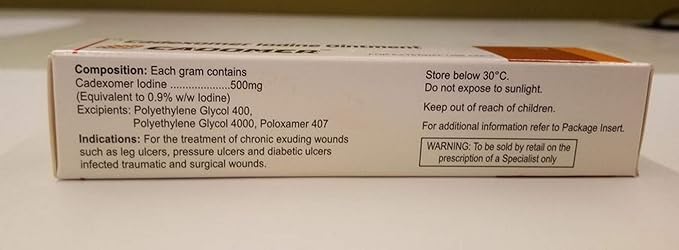 Cadomer Ointment is a topical antimicrobial preparation primarily used to manage chronic wounds such as diabetic ulcers, venous leg ulcers, pressure sores, and infected surgical or traumatic wounds. It contains Cadexomer iodine, which plays a key role in cleansing the wound while reducing the bacterial load, thus supporting the natural healing process.