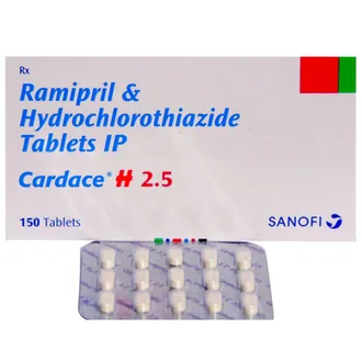 Cardace H 2.5 Tablet is a medicine that helps control high blood pressure. It contains two active ingredients that work together to ease pressure on the heart and improve blood circulation. Keeping blood pressure within a healthy range also reduces the chances of serious complications such as stroke, heart attack, or kidney damage.
