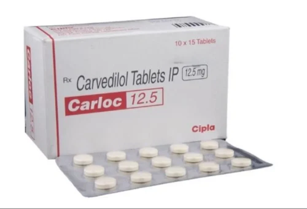 Carloc 12.5 Tablet is a prescription medication used to manage high blood pressure (hypertension), angina (chest pain), and heart failure. By relaxing blood vessels and slowing the heart rate, it helps improve blood flow to the heart, reducing the risk of heart attacks, strokes, and other cardiovascular complications.