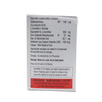 Carnimac Q Tablet is a health supplement that combines essential nutrients, antioxidants, and energy-boosting compounds to support overall vitality, nerve function, and heart health. It is often prescribed to improve energy production at the cellular level, protect tissues from oxidative stress, and enhance recovery in people suffering from weakness, fatigue, or metabolic disorders. This supplement is particularly helpful for individuals with nerve-related problems, diabetes-associated complications, cardiovascular issues, or those recovering from long-term illness. By providing a balanced mix of vitamins, amino acids, and coenzymes, Carnimac Q Tablet helps strengthen immunity, supports brain function, reduces oxidative damage, and promotes better stamina. Regular use under medical supervision contributes to improved energy, nerve stability, and overall wellness.