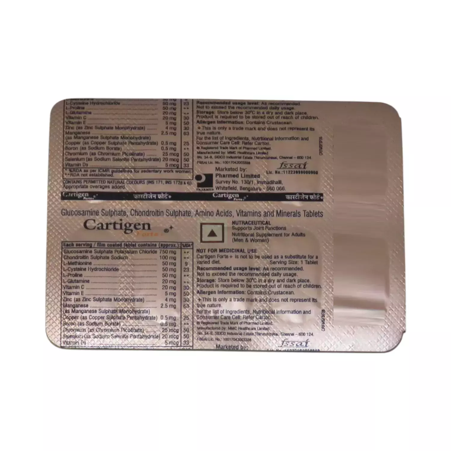 Take the Cartigen Forte+ Tablet as directed by your healthcare provider. Swallow the tablet whole with water after meals. Do not exceed the recommended dosage.