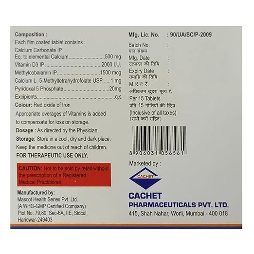 Cavit-XT Tablet combines essential nutrients including Calcium Carbonate, Vitamin D3, Methylcobalamin, L-Methyl Folate Calcium, and Pyridoxal-5-phosphate.