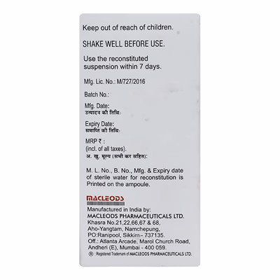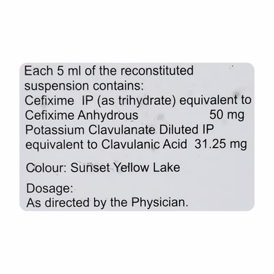 Cefolac CV 50mg Oral Suspension is a potent combination of Cefixime and Clavulanic Acid, specifically designed to treat bacterial infections in children aged 6 months to 12 years. This dual-action formulation targets harmful bacteria, helping to control infections effectively while preventing bacterial resistance.