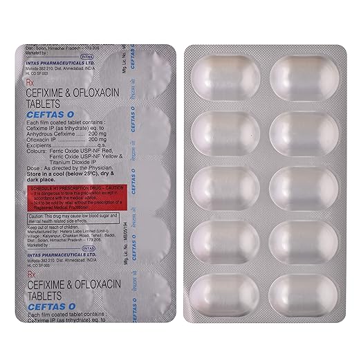 Ceftas O Tablet is a prescription antibiotic designed to treat a wide range of bacterial infections. It combines Cefixime and Ofloxacin to target harmful bacteria, preventing their growth and stopping the spread of infection. This tablet is effective for infections in the ear, sinus, throat, lungs, urinary tract, skin, and soft tissues.
