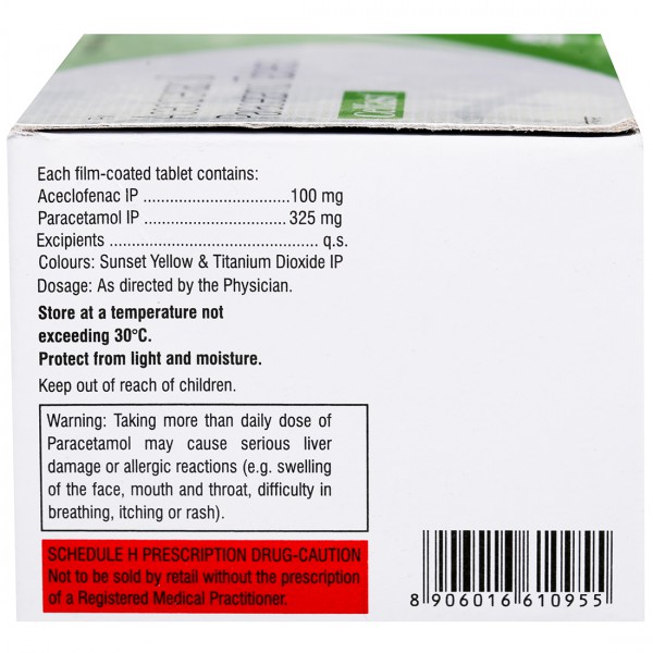• Allergies: Avoid if allergic to Aceclofenac, Paracetamol, or other components.