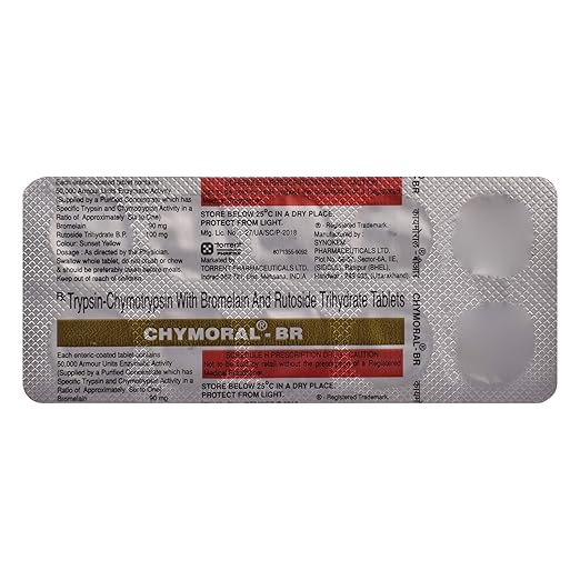 Chymoral-BR Tablet should be taken with food to minimize the risk of stomach upset. The dosage and duration depend on the specific condition being treated and your doctor’s recommendations. Adhere strictly to the prescribed regimen, and do not adjust the dose or stop the medicine without consulting your healthcare provider.