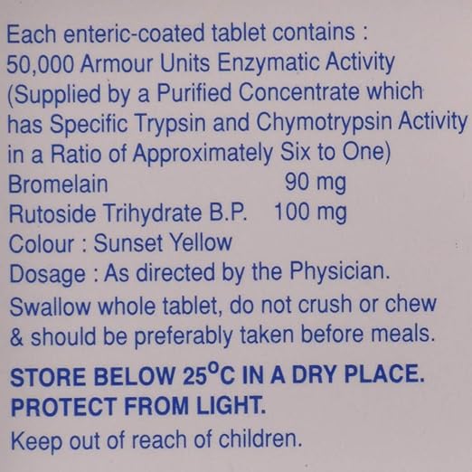 This tablet combines Bromelain, Rutoside, and Trypsin Chymotrypsin. Bromelain and Trypsin Chymotrypsin are enzymes that improve circulation and promote natural anti-inflammatory processes. Rutoside acts as a strong antioxidant, protecting the body from harmful free radicals and reducing inflammation further. Together, these ingredients target pain at the source for effective relief.