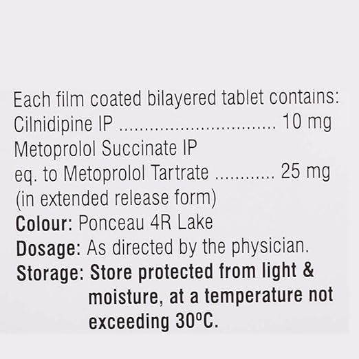 Cilacar-M 10/25 Tablet ER is a prescription medicine used to manage high blood pressure. It contains two active ingredients that work together to effectively control blood pressure, especially when a single drug is not sufficient. By lowering blood pressure, this medication helps reduce the chances of serious health issues like heart attacks and strokes in the future.