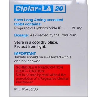 Ciplar-LA 20 Tablet is a prescription medication used to prevent chest pain caused by angina, manage migraines, and assist in treating pheochromocytoma, a rare tumor of the adrenal gland. The tablet works by reducing heart rate and relaxing blood vessels, thereby lowering the workload on the heart and enhancing blood circulation.