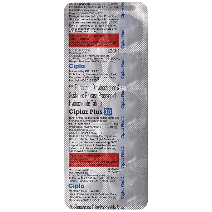 Ciplar Plus 10 Tablet contains two main ingredients: Propranolol and Hydrochlorothiazide. Propranolol works by slowing down the heart rate and relaxing blood vessels, while Hydrochlorothiazide acts as a mild diuretic that helps remove extra salt and water from the body. Together, they effectively lower blood pressure and reduce the strain on the heart.