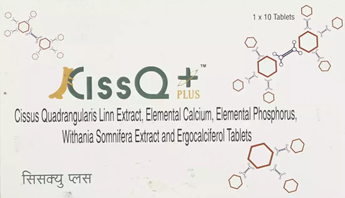Ciss Q Plus Tablet is a health supplement designed to support bone and joint wellness. It is particularly beneficial for enhancing bone density, promoting healing in cases of fractures, and supporting women’s health—especially during menopause. This tablet combines herbal extracts and essential nutrients to aid in overall skeletal strength and joint flexibility.