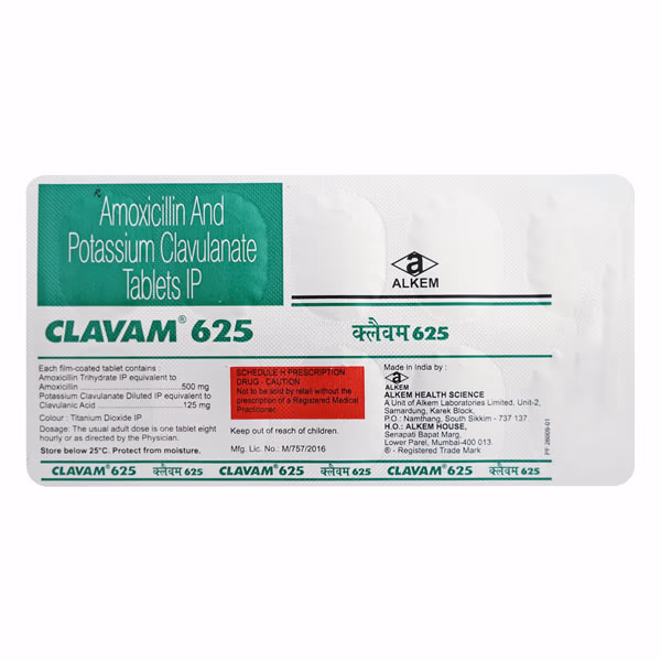 Clavam 625 Tablet is a prescription antibiotic used to treat various bacterial infections. It is commonly recommended for infections in the lungs (such as pneumonia), ears, sinuses, urinary tract, skin, and soft tissues. This medicine is not effective against viral illnesses like the common cold.